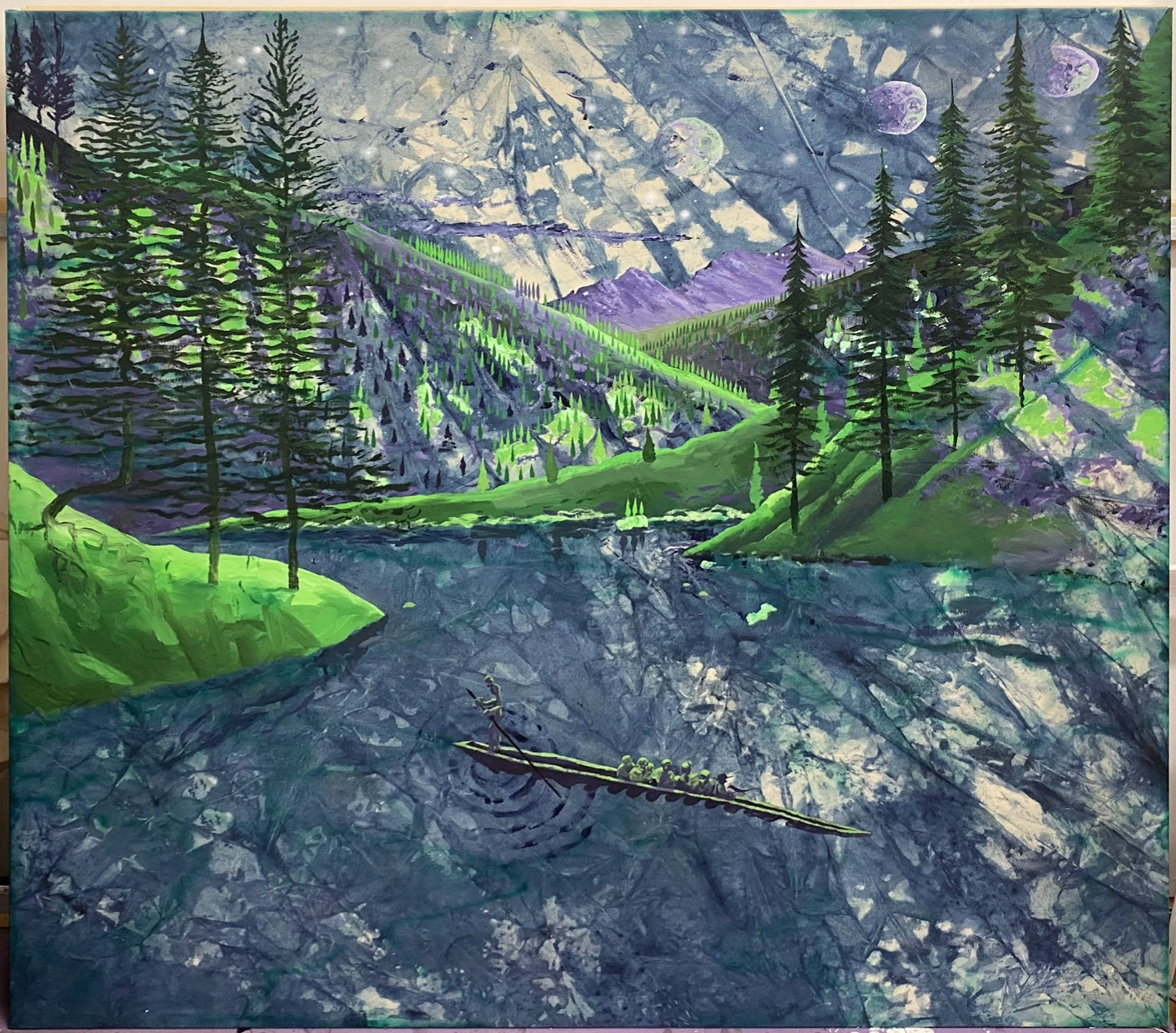 “Gathering Moss”, Acrylic on canvas, 5ftx10ft, 2022